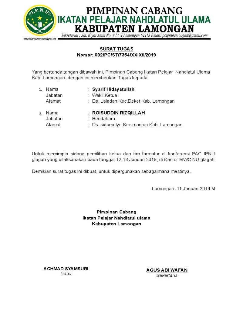 Contoh Surat Tugas Ipnu / Administrasi Ipnu Ippnu Ppt Download - Apakah kamu sedang mencari contoh surat tugas guru resmi?. Contoh surat tugas penuntasan proyek. Pentingnya surat tugas untuk berbagai urusan. Report contoh surat rekomendasi pengesahan ipnu. Contoh surat tugas dalam artikel ini diantaranya adalah surat tugas organsisasi, surat perintah tugas, perjalanan dinas dan yang lainnya. Surat perintah tugas atau surat tugas adalah surat yang secara resmi dikeluarkan oleh perusahaan, instansi, atau organisasi yang ditujukan kepada karyawan untuk melakukan sebuah pekerjaan atau tugas tertentu.